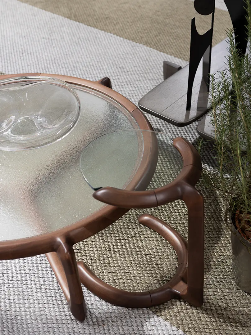 "A sinfonia musical vem traduzida nos devaneios das curvas de um braço, na doçura das formas de um assento, no acolhimento que o móvel proporciona. São peças super funcionais, de uso flexível, mas que também funcionam como componentes artísticos/estéticos no espaço que ocupam."