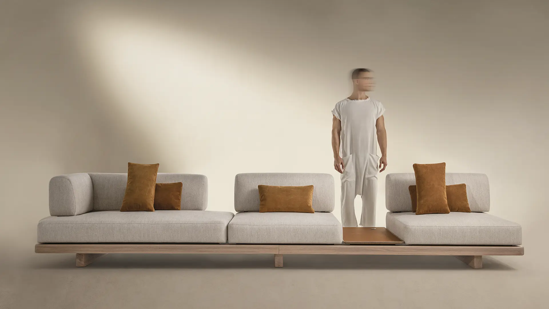 Simplicidade, elegância, leveza e conforto. Esse mood resgata a potência do design por meio dos traços limpos e das linhas retas, puras, acionando fundamentos sobre essencialidade/ elementaridade que embasam o minimalismo japonês, cujas estruturas se sustentam sobre a dinâmica poética entre vazios e preenchidos – o espaço ocupado e o espaço livre de ocupação. Nestas páginas, o biombo Hive sintetiza a proposta. Outro móvel, o módulo Geta, emblematiza esse mood com arquétipo inspirado em tamanco oriental e atualizado por meio de trilhos que permitem deslizar os assentos e mesa de apoio sobre toda a área horizontal da base. Os acabamentos conferem uma peça extremamente elegante inclusive de costas. Modularidade, movimento, Yin-Yang, complementaridade.