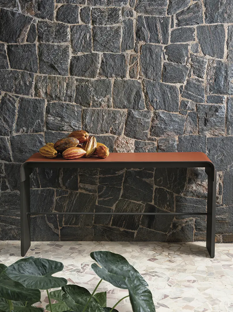 Anastassiadis sugere uma continuidade de determinados elementos pré-existentes nas linhas lançadas em anos anteriores: num dos exemplos mais eficazes, o icônico sofá Geta evolui e muda de nome (Costa), ganhando estrutura em fibra de vidro para resiliência extra às intempéries, enquanto mantém seu arquétipo inspirado no formato de um tamanco japonês descolado do piso, facilitando a limpeza e evitando, por exemplo, o acúmulo de água na parte inferior do móvel, que parece levitar. Também o conceito de nomadismo é ativado. “As pessoas desejam cada vez mais essa itinerância, esse poder carregar os pertences de um lugar ao outro na casa, sem dificuldades”, explica ao citar o exemplo do uso de alumínio nas estruturas para atingir mais leveza.