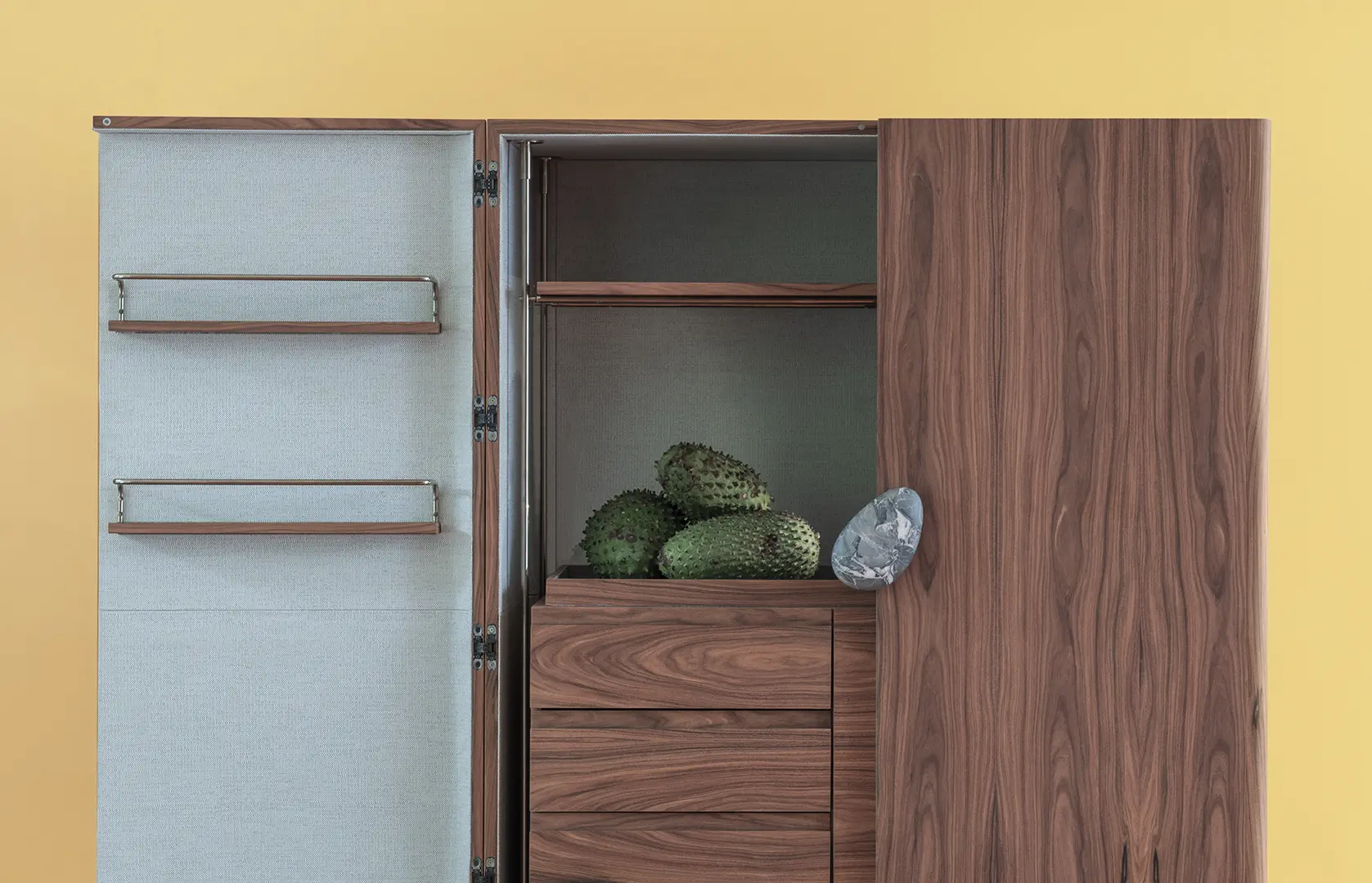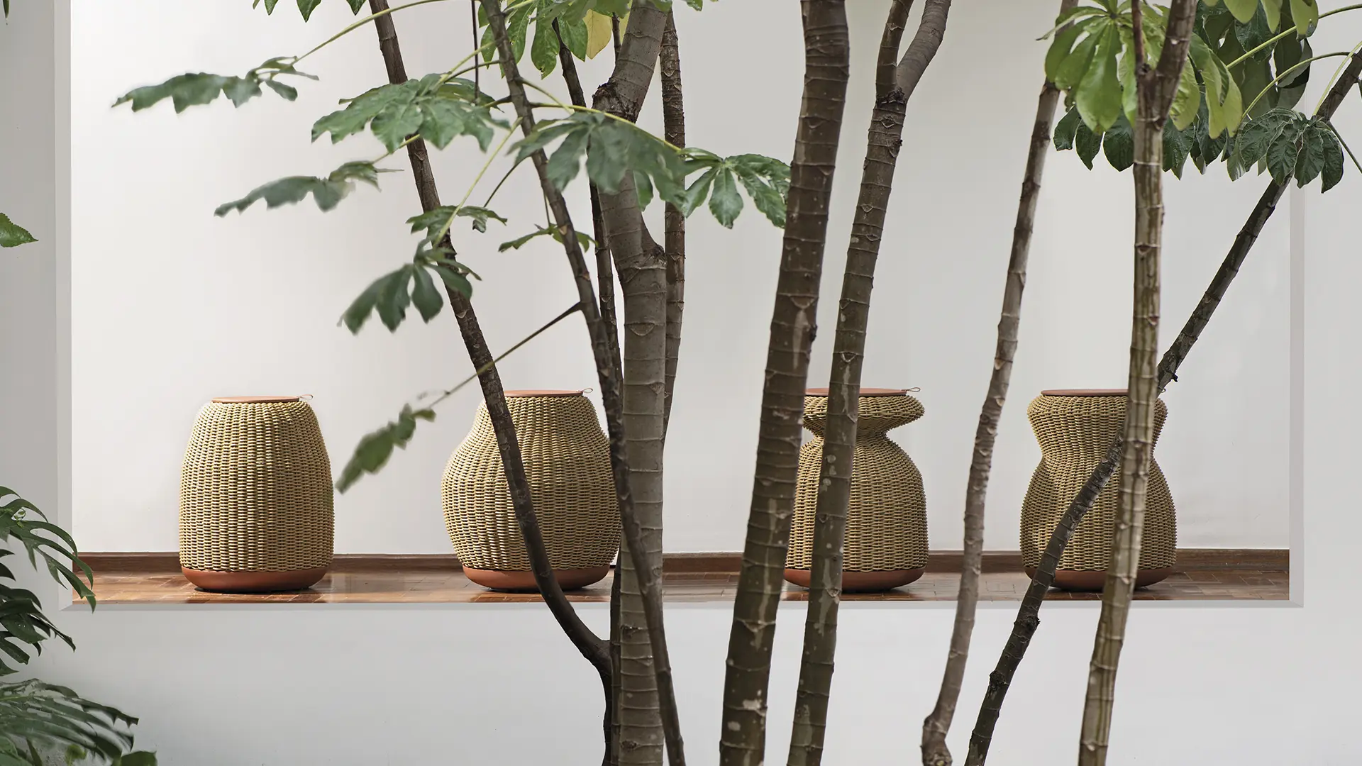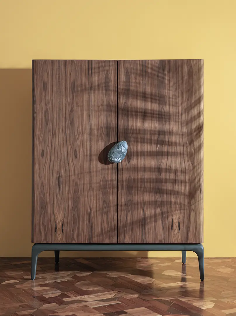 O conceito de outdoor vai além da casa de campo ou praia. “A mentalidade outdoor é uma forma de vivenciar cada espaço”, explica Patricia. “Você pode abrir a janela e sentir o vento no rosto – isso, em si, é uma experiência outdoor”. As referências indígenas e artesanais, tão caras ao design brasileiro, surgem com força adicional em móveis contemporâneos como os stools Capo, Occhio, Bocca e Piede: quarteto fantástico que migra da funcionalidade de sentar para a necessidade de armazenar num piscar de olhos – seus interiores, ocos, podem ser acessados por meio da tampa superior removível. O mesmo vale para a mesa de centro Sole, cujo formato remete diretamente ao sol que nos abastece.