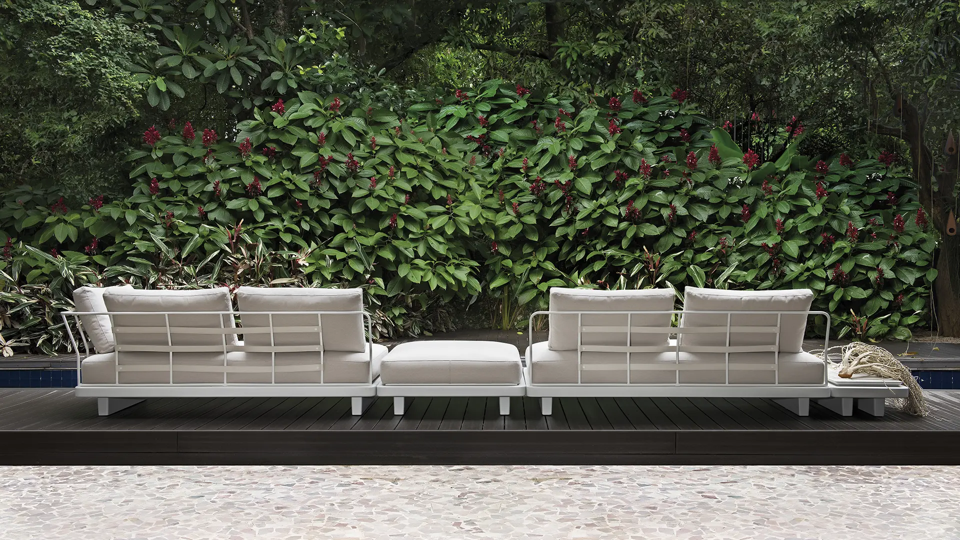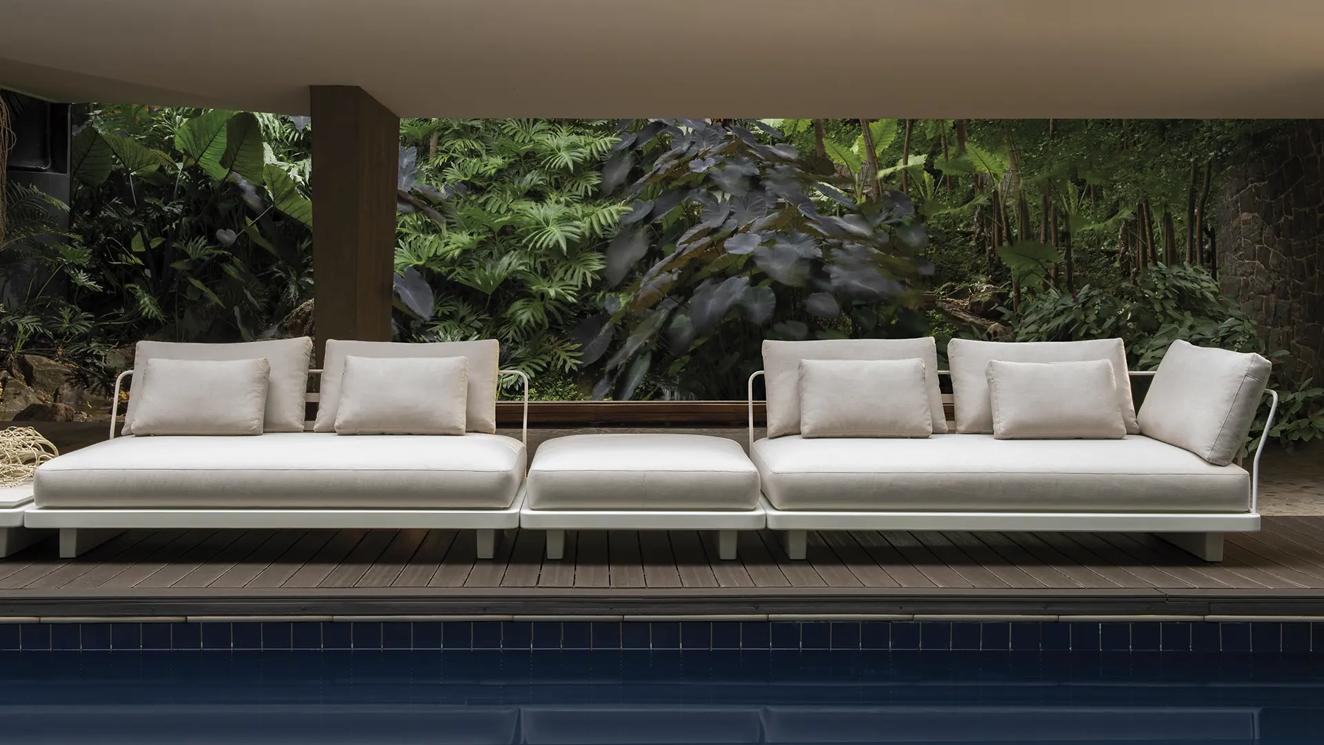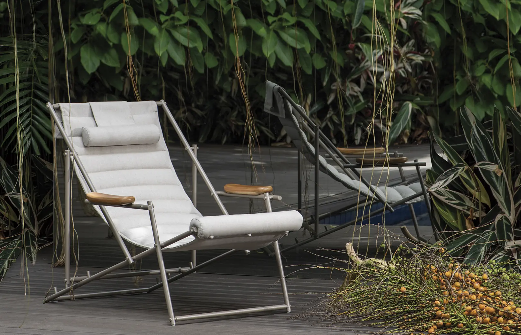 “Há detalhes como o apoio de nuca com contra-peso e os assentos com gomos, que proporcionam mais ergonomia/conforto, ou os suportes para smartphones, carregadores USB, pernas dobráveis, estruturas em alumínio (mais leves e menos suscetíveis à corrosão), tecidos náuticos, madeira teca”, revela. “Não quero que esses móveis sejam especificados para uso indoor ou outdoor – quero que eles estejam em qualquer lugar: dentro de casa, numa varanda semi-coberta, a céu aberto”, propõe. “As fronteiras se dissipam, se misturam, não há limites entre dentro e fora. O mobiliário transmite a liberdade outdoor ao desconstruir o modo como as pessoas interagem – são elementos meditativos, contemplativos, escapistas, feitos para serem usufruídos. Os produtos nesta coleção ficaram mais versáteis e mais inteligentes, sendo capazes de atender às mais variadas demandas. A casa virou bar, restaurante, cinema, praça pública. Essa nova linha permite explorar todo o potencial de cada espaço, dentro e/ou fora”, finaliza.